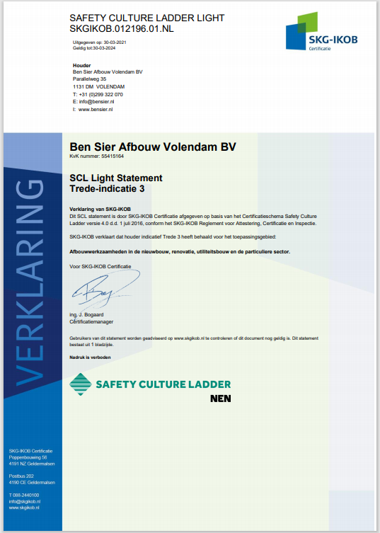 logo ben sier Ben Sier blijft op bouwtechnisch gebied op de hoogte! Daarom zijn wij ook zeer transparant en laten wij u graag onze certificeringen zien. Een aantal van onze certificeringen vindt u op deze pagina.